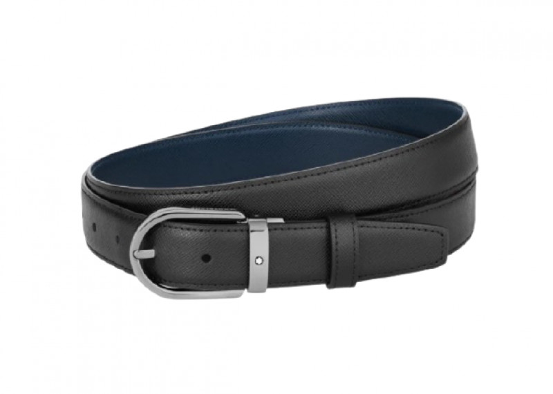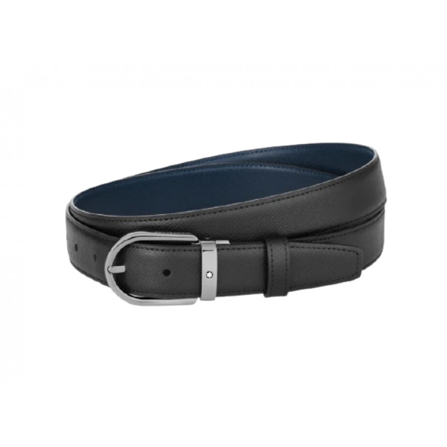 Montblanc Sartorial Cintura reversibile in pelle nera/blu 30 mm con fibbia a ferro di cavallo