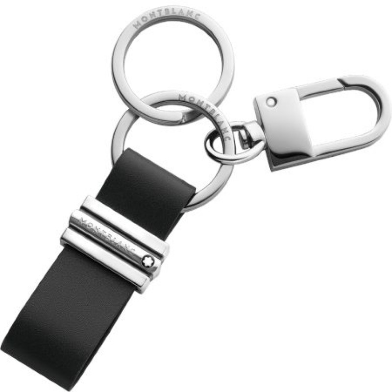 Portachiavi in pelle nera e metallo, firmato MontBlanc.