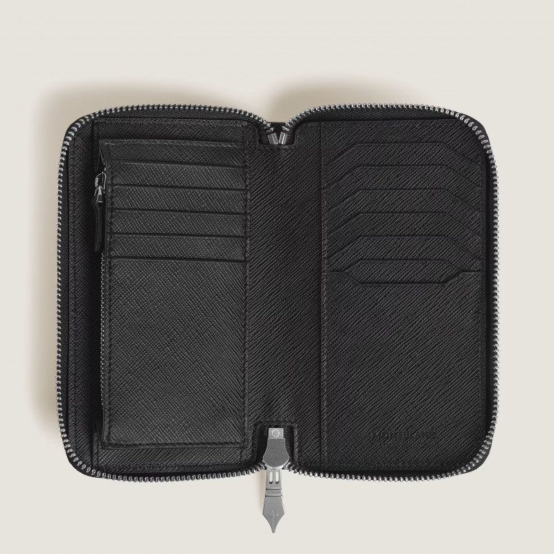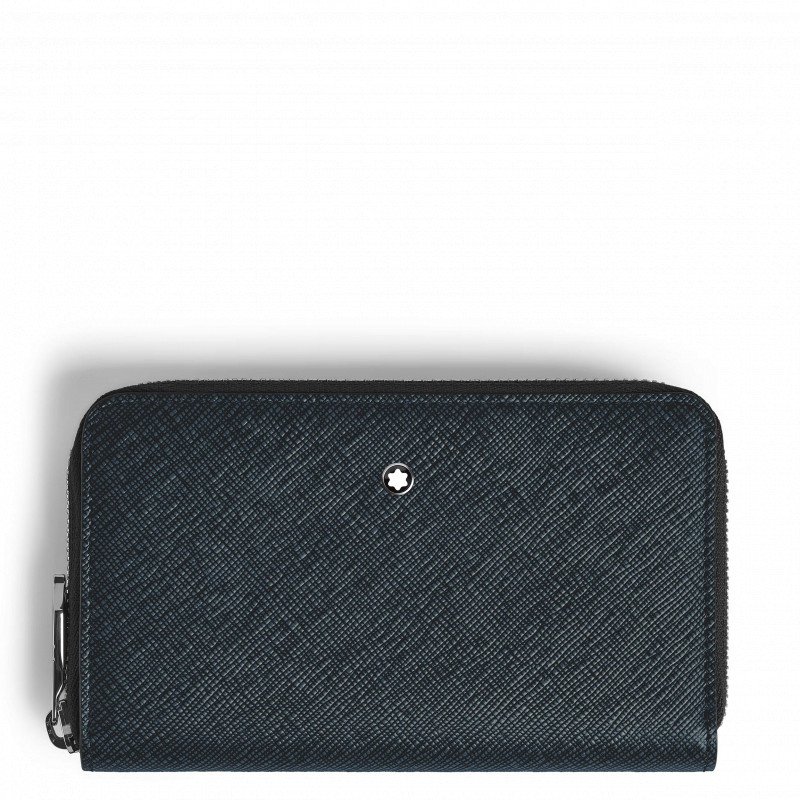 Portafoglio Montblanc collezione Sartorial Continental Medio 12 Tasche con Cerniera colore tweed blu.