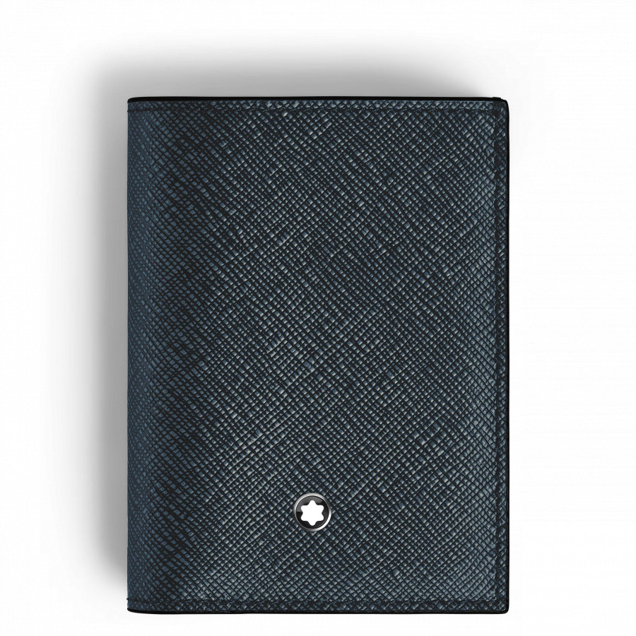 Portafoglio Montblanc Mini collezione Sartorial con 4 scomparti color tweed blu.