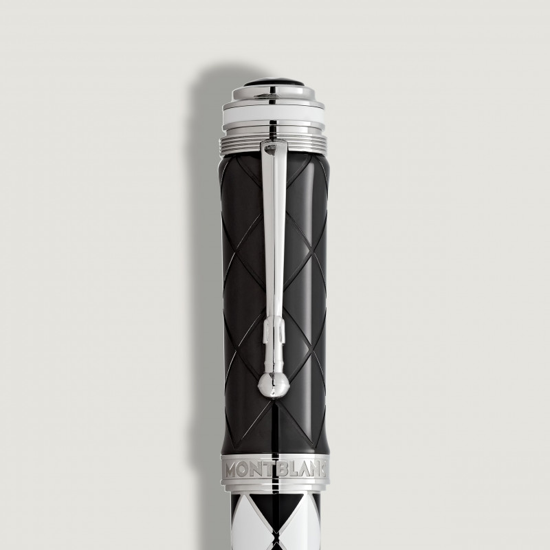 Nella ricca storia della musica rock pochi nomi hanno brillato con tanta costanza come quello dei Queen. Con una carriera che abbraccia oltre cinque decenni, la band è tra le più famose di tutti i tempi. Durante questo periodo, i Queen sono diventati l’incarnazione del potere della creatività musicale e la maggior parte delle loro canzoni rimase in cima alle classifiche per settimane. Hanno creato una sorta di universo musicale proprio a loro, composto da una combinazione di hard rock, glam rock, pop, funk e opera, abbattendo i confini tra i generi. Montblanc dedica la sua Great Characters Homage to Queen Limited Edition 8 a queste icone della musica rock, traendo ispirazione dall’album A Night At The Opera. Bianco e nero: nessun’altra combinazione di colori descrive un contrasto così netto e nessun’altra potrebbe simboleggiare meglio la vastità dell’universo musicale dei Queen. Per un determinato periodo, The Black and the White fu persino preso in considerazione come titolo del loro secondo album in studio e fu il motto della spettacolare festa di compleanno di Mercury undici anni dopo. Anche la Limited Edition 1975 appare in questa veste contrastante. Il quarto album in studio della band, tuttavia, ha superato tutto ciò che era stato fatto in precedenza ed è considerato l’album più elaborato del XX secolo. I quattro artisti che vi hanno partecipato sono passati alla storia: Freddie Mercury, il carismatico frontman con un’estensione vocale di diverse ottave e un ricco vibrato; Brian May, il virtuoso chitarrista dal sound inconfondibile; John Deacon, il bassista genio creativo; e Roger Taylor, il cuore ritmico della band. In omaggio a questi quattro musicisti eccezionali, i loro ritratti stilizzati sono immortalati sul cappuccio nero dello strumento di scrittura, ispirato alle iconiche copertine di Queen II e Hot Space. L’album A Night at the Opera - e in particolare il suo pezzo forte Bohemian Rhapsody - esemplifica il sogno di Freddie Mercury di creare un disco di proporzioni epiche. L’arrangiamento stravagante di sei minuti del singolo combina ballate al pianoforte, opera e rock, intervallati da strati su strati di voci operistiche e cascate vocali e riferimenti eccentrici a personaggi come Galileo o Scaramuccia, una figura della Commedia dell’Arte. Lo stesso Mercury, noto per i suoi costumi di scena sgargianti, spesso indossava le vesti di un altro personaggio della Commedia dell’Arte, Arlecchino. La sua famosa tuta aderente con motivo a losanghe bianche e nere sottolineava la sua personalità scenica non convenzionale e ha ispirato il design romboidale del cono. L’edizione rende omaggio anche a Brian May e al suo straordinario modo di suonare la chitarra, fondamentale per il sound dell’album, conferendo al cono finitura platino il suo aspetto distintivo. Quest’ultimo ricorda le manopole di controllo del volume e del tono della famosa chitarra elettrica di May. L’anello del cono è impresso con il nome dell’album: A Night at the Opera. L’anno della sua uscita, il 1975, ha ispirato la decisione di limitare l’edizione a 1975 stilografiche e 1975 roller. La corona indossata da Mercury durante l’esecuzione finale di God Save The Queen ha ispirato la silhouette della parte superiore del cappuccio Limited Edition ed è allo stesso tempo una metafora del carattere maestoso della band e della sua eredità musicale. La clip finitura platino è stata disegnata per ricordare l’asta di un microfono, in riferimento a uno dei tratti distintivi delle esibizioni dal vivo di Freddie Mercury.