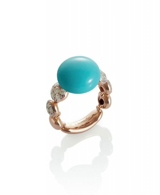 Anello Chantecler in oro rosa, diamanti e turchese, appartenente alla collezione Bon Bon.
