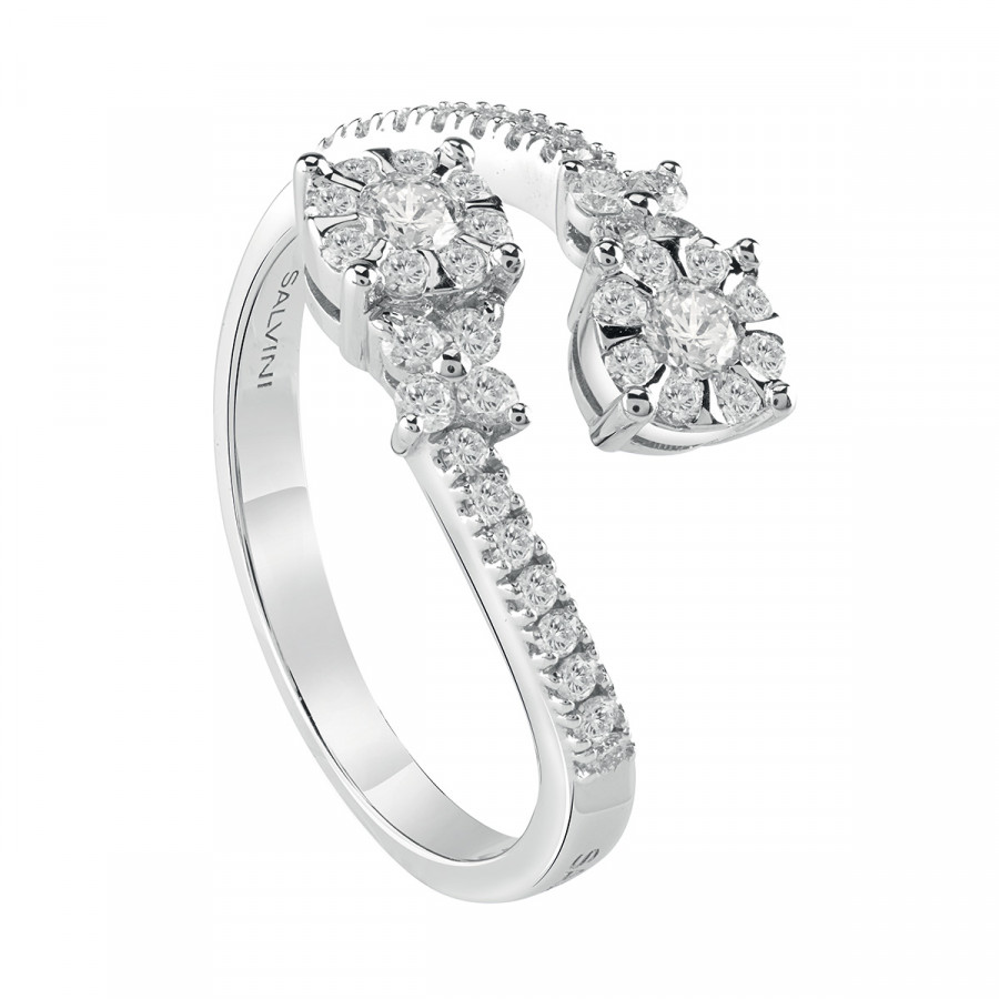 Anello in oro bianco con diamanti, della collezione Daphne di Salvini.