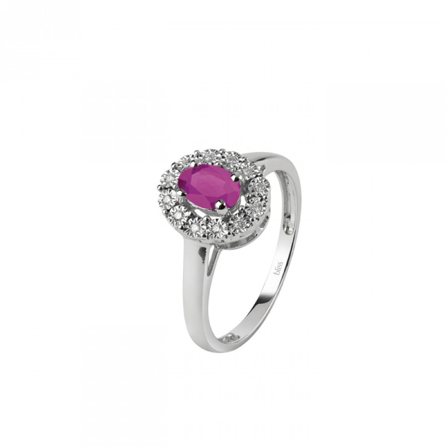 Anello Bliss in oro bianco con diamanti e rubino della collezione Regal