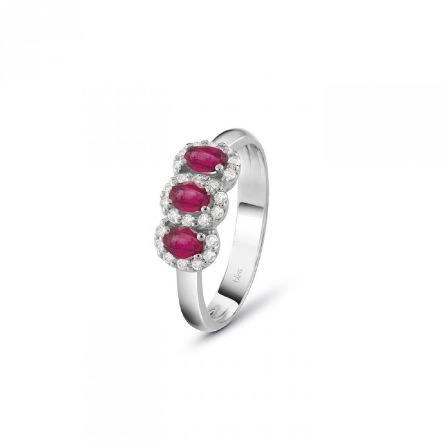 Anello Bliss in oro bianco, diamanti e tre rubini, della collezione Bliss Dream Colore