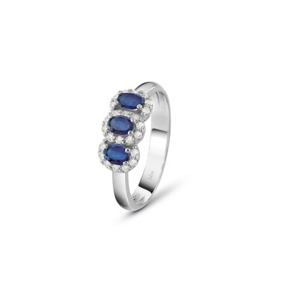 Anello Bliss in Oro Bianco, diamanti e zaffiri, della collezione Dream, della famiglia La Gioielleria.
