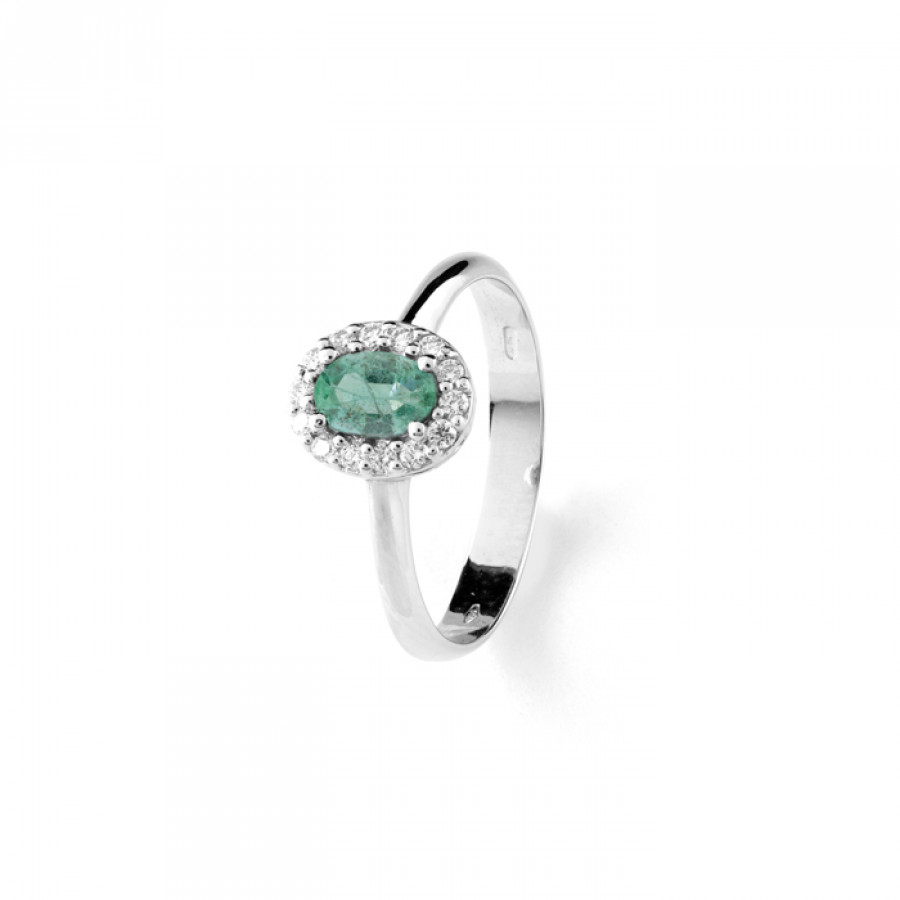 Anello Bliss in oro bianco, diamanti e smeraldo, della collezione Dream.