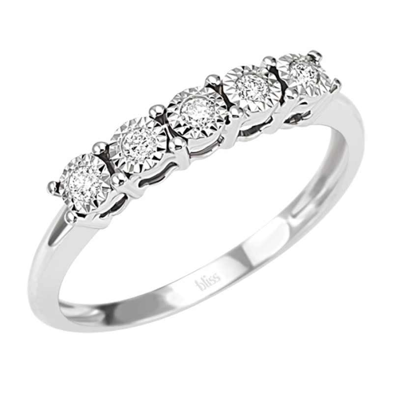 Anello Bliss in oro bianco e 5 diamanti della collezione Rugiada, della famiglia La Gioielleria