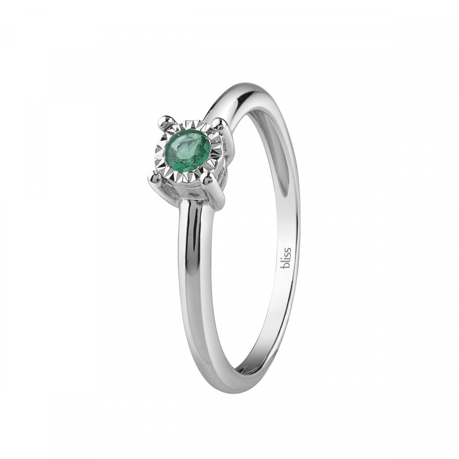 Anello in Oro Bianco e Smeraldo della collezione Rugiada, della famiglia La Gioielleria di Bliss.