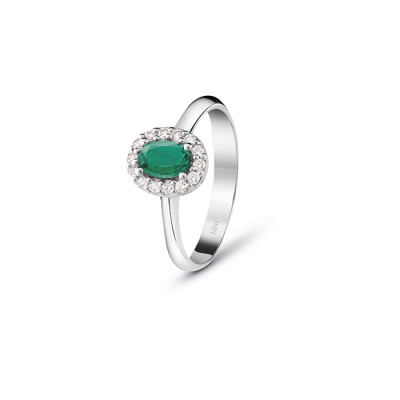 Anello in Oro Bianco 18kt, smeraldi e diamanti della collezione Bliss Dream.