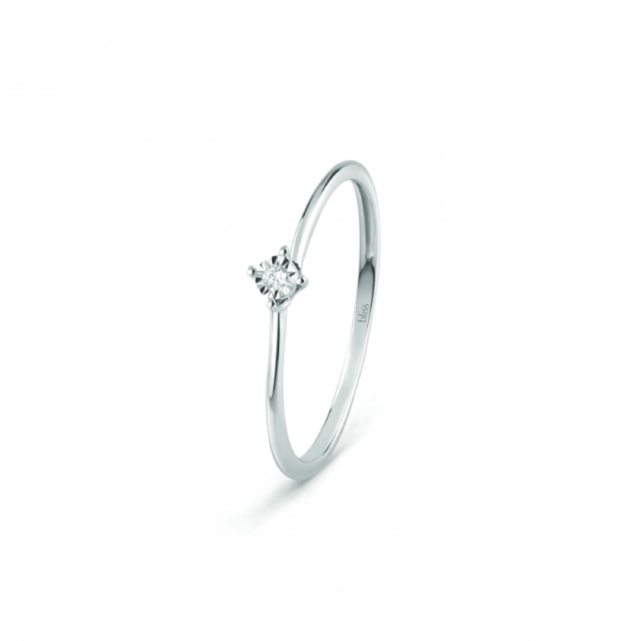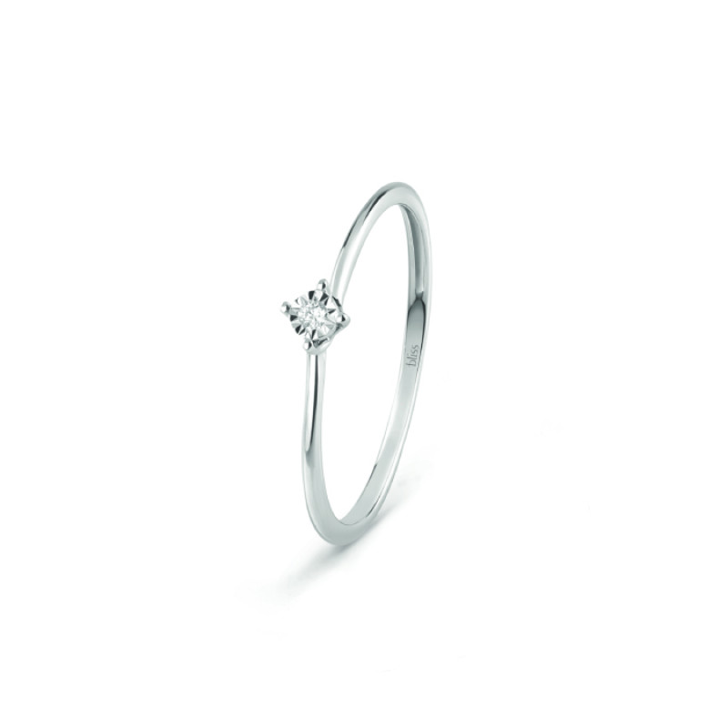 Anello Bliss in oro bianco 18kt e diamante della collezione Rugiada.
