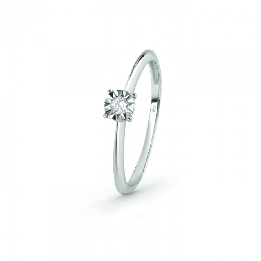 Anello Bliss in oro bianco 18kt e diamante della collezione Rugiada.