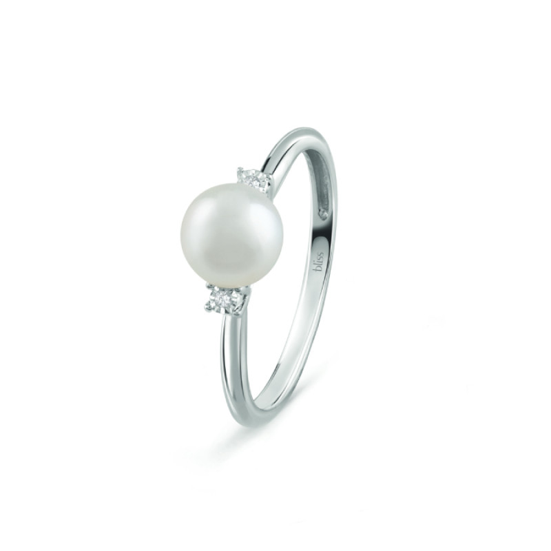 Anello Bliss in oro bianco 18kt, perle e diamanti della collezione Rugiada.