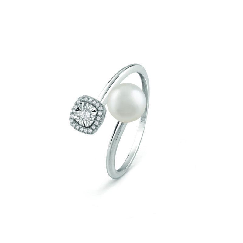 Anello Rugiada in oro bianco, perle e diamanti 0.08 ct.