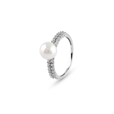 Anello Rugiada in oro bianco, perla e diamanti 0.1 ct.