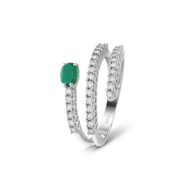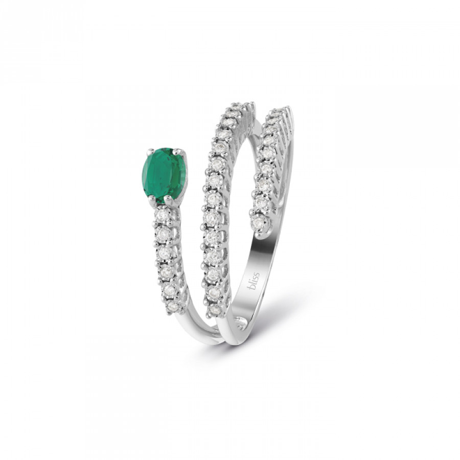 Anello in oro bianco 18kt, smeraldo e diamanti della collezione Bliss Rugiada Colors.