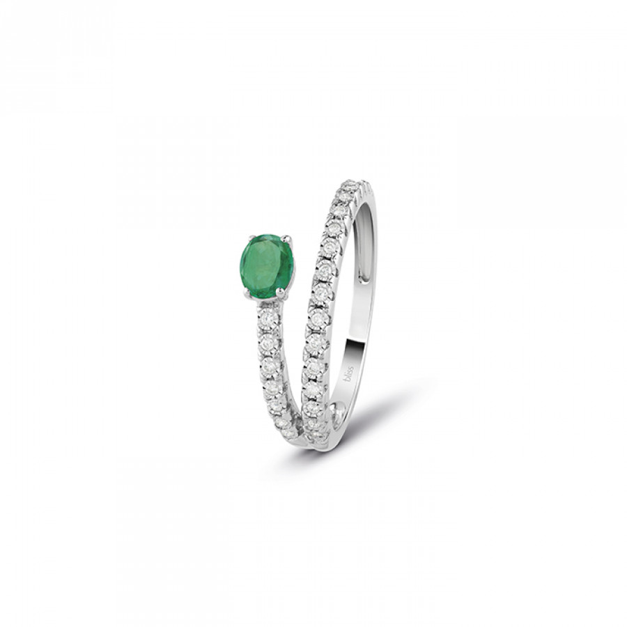 Anello in Oro Bianco 18kt, smeraldi e diamanti della collezione Bliss Rugiada Colors.