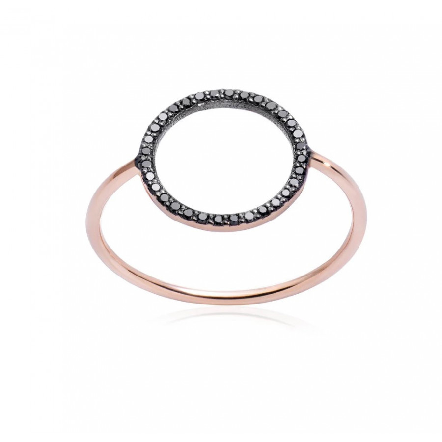 Anello con cerchio in oro rosa 18 kt e diamanti neri della collezione Linee ed Archi di Burato Gioielli.