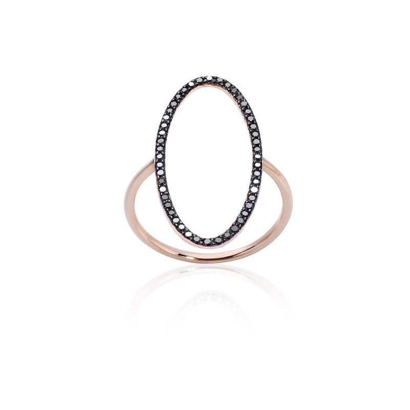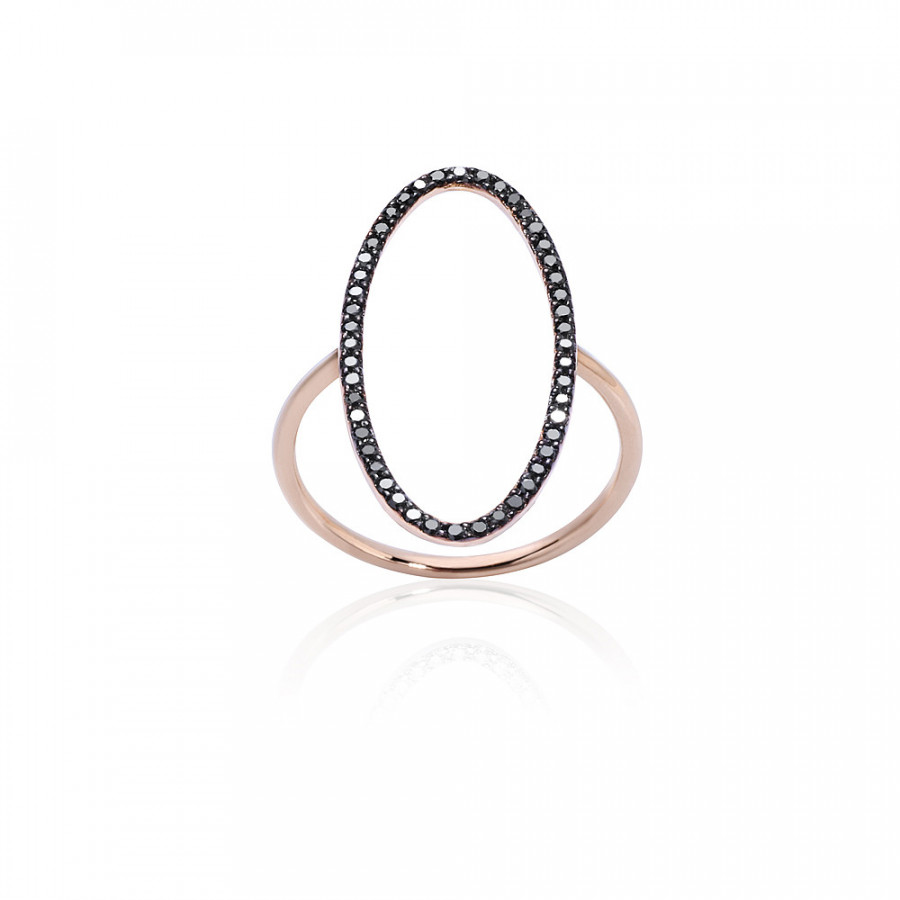 Anello ovale in oro rosa 18 kt e diamanti neri della collezione Linee ed Archi di Burato Gioielli.