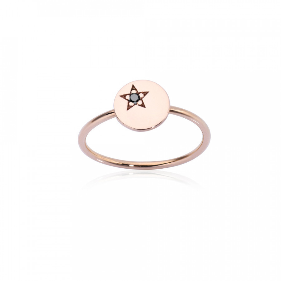 Anello con stella in oro rosa 18 kt con diamante nero della collezione Star Paillettes di Burato Gioielli.