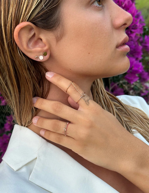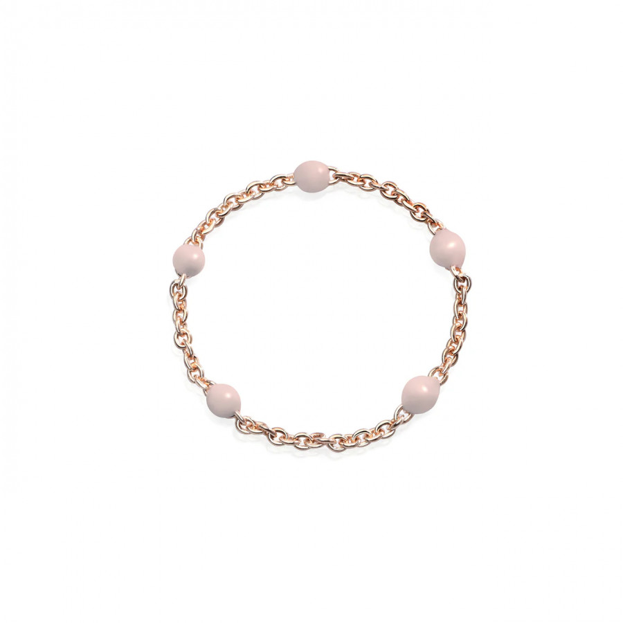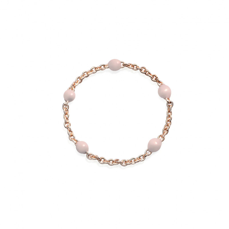 Giocoso e pieno di freschezza, l'anello morbido Rose Dots illumina con la dolcezza di una cascata di sfere rosa la catena in oro 18K. Il gioiello perfetto per chi ama indossare più anelli con un look alla moda e originale.