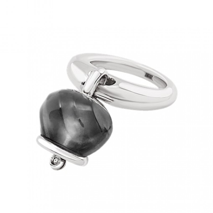 Anello Chantecler Campanella medio in argento, resina sfaccettata a mano color nero e un diamante, appartenente alla collezione Et Voilà