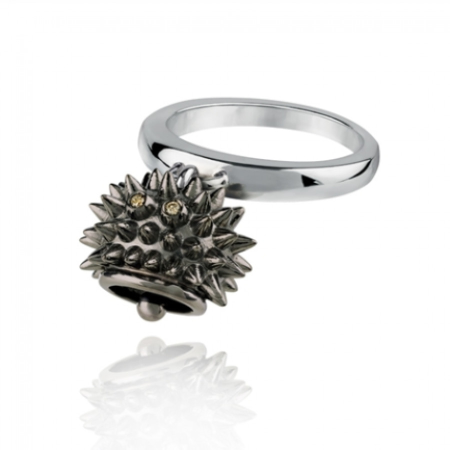 Anello riccio micro in argento brunito e diamanti brown, appartenente alla collezione Et Voilà di Chantecler.