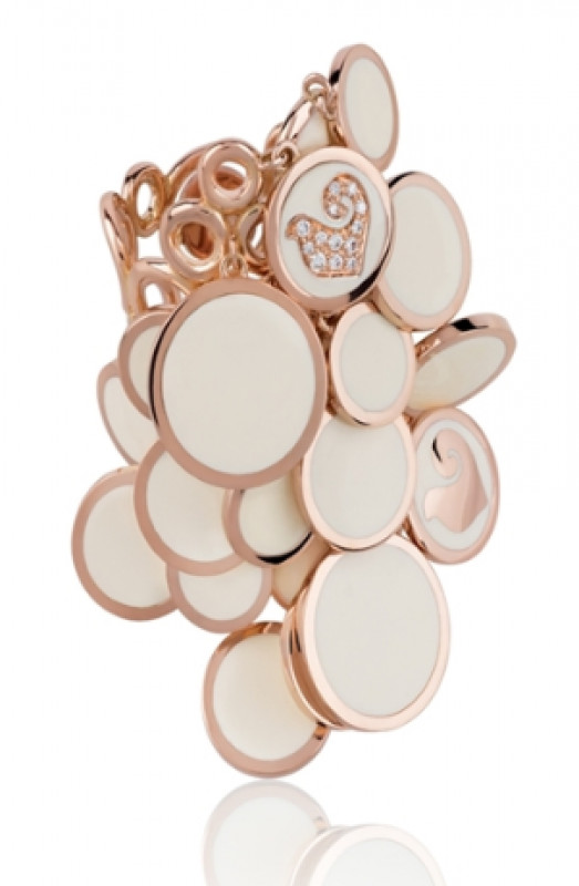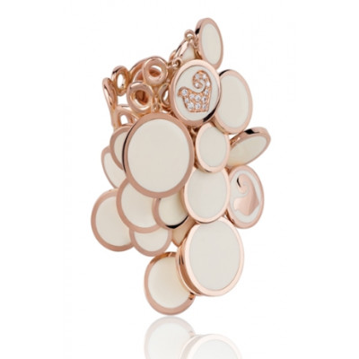 Anello Paillettes a cascata in oro rosa, diamanti e smalto bianco