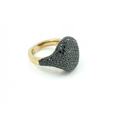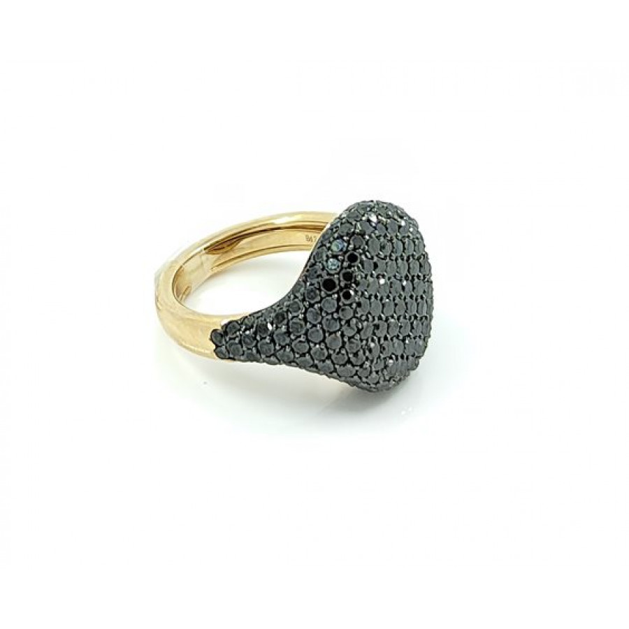 Anello Chevalier in oro rosa con pavé di diamanti neri ct. 2.30 F VS