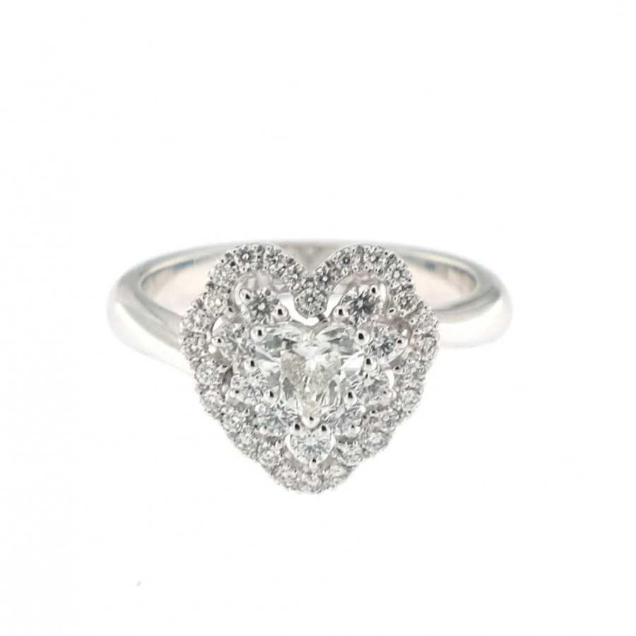Anello Crivelli “I will. I do” a foma di cuore e diamanti bianchi. In oro 750°%, è composto da un diamante centrale tagliato a cuore e da altri diamanti bianchi. A rifinire elegantemente l’anello, una cornice di pavé di diamanti bianchi. Un capolavoro dell’alta gioielleria, di un’eleganza unica ed irripetibile, il modello a cuore è un gioiello senza tempo. Prezioso come i diamanti che li compongono. Un simbolo d’amore indissolubile.
