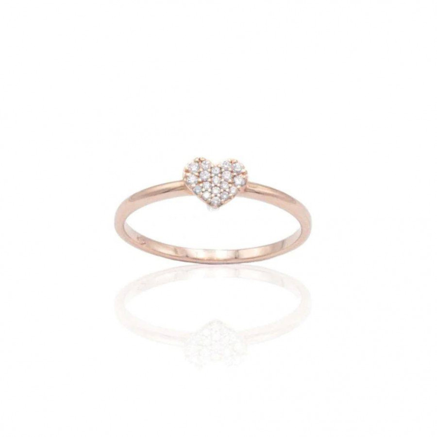 Anello oro rosa e cuore brillanti ct 0,07 G Si Peso g. 1,60