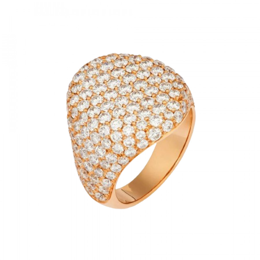 Anello Chevalier in oro rosa con pavé di diamanti bianchi
