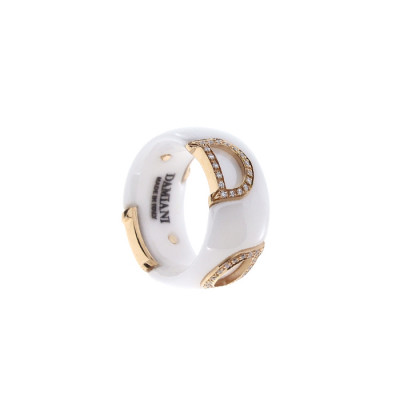 Anello Damiani D.ICON in ceramica bianca e oro rosa con diamante