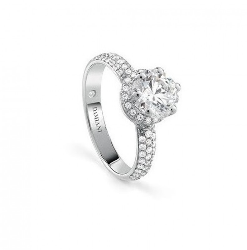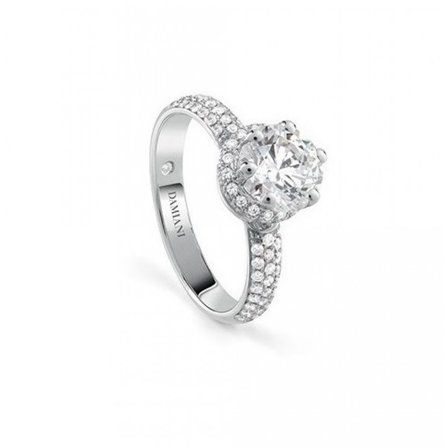 Anello solitario Damiani Minou full pavè in oro bianco