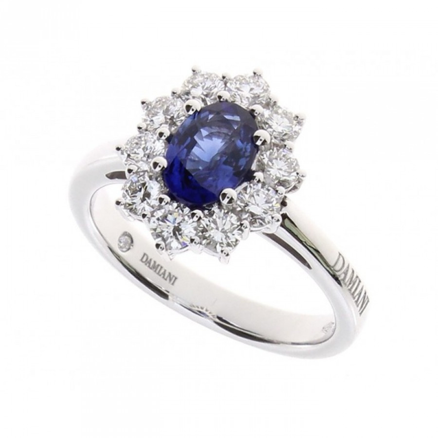 Anello Damiani in oro bianco con diamanti e zaffiro, della collezione Gemme