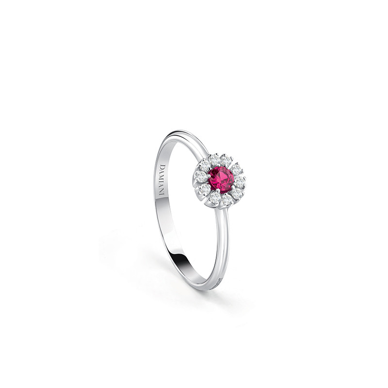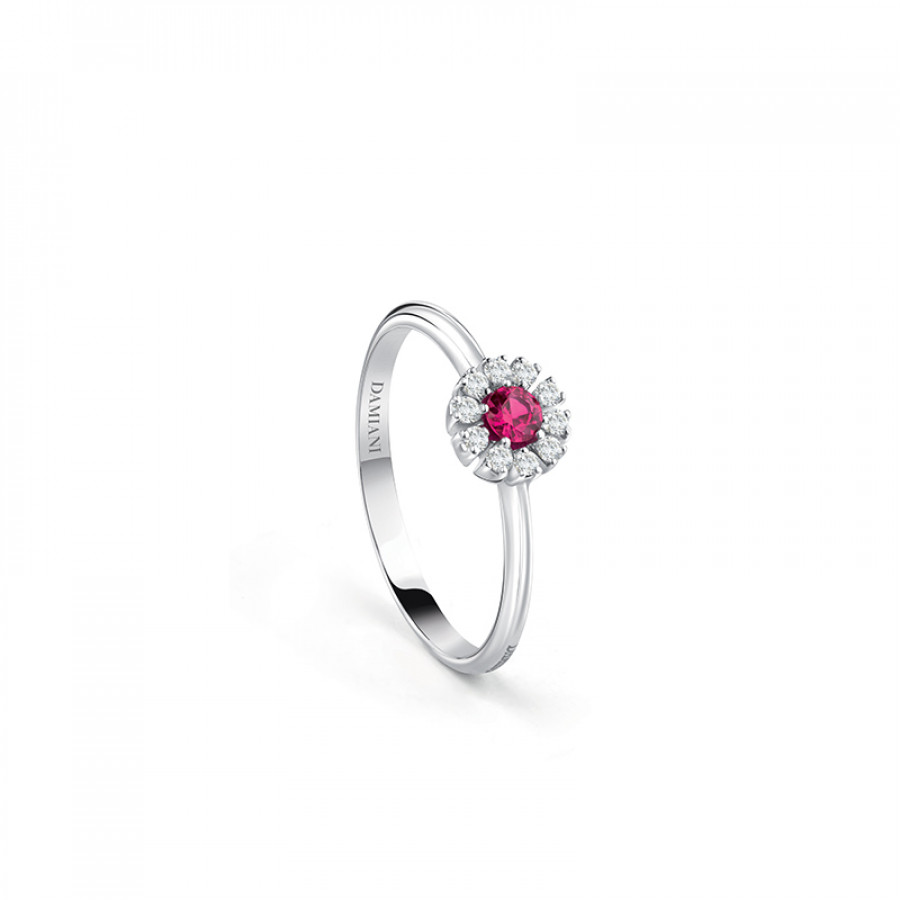 Anello in oro bianco con diamanti e rubino di Damiani Margherita