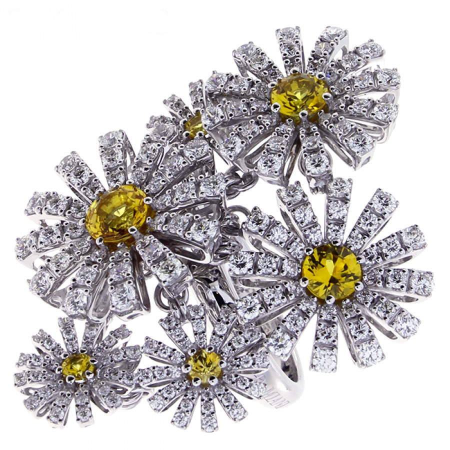 Anello Damiani in oro bianco con diamanti e zaffiri gialli della collezione Margherita