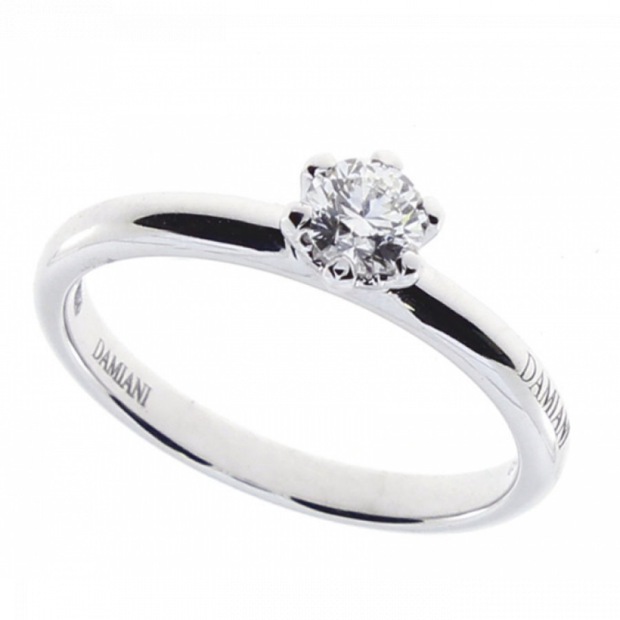 Anello solitario Damiani in oro bianco 18k con diamante ct. 0,41 G VS1 della collezione Veramore.