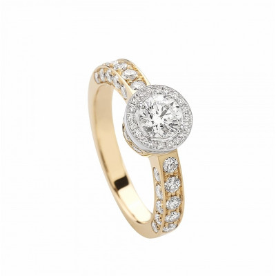 Giorgio Visconti solitario in oro bianco e rosa con diamante taglio brillante e gambo a pavé.