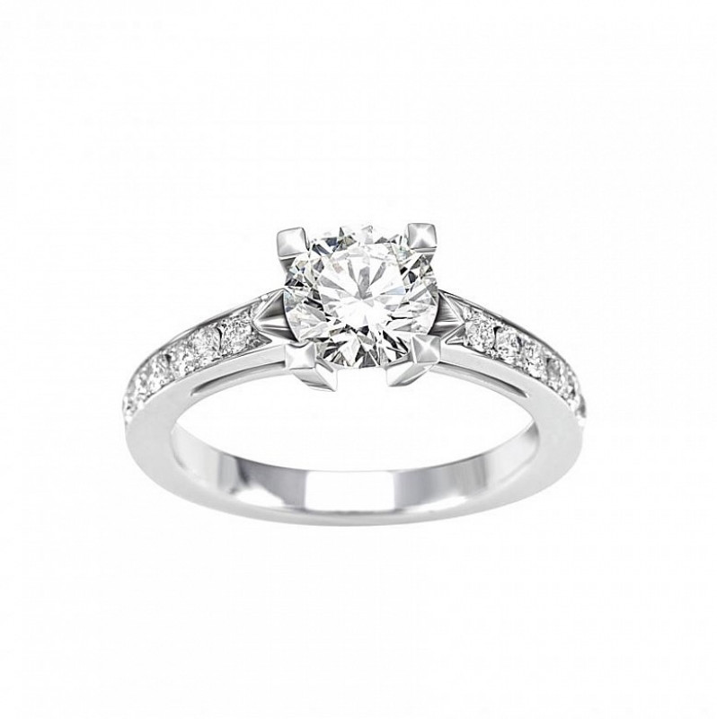 Anello solitario Giorgio Visconti Tesoro in oro bianco e diamante taglio brillante e gambo a pavé
