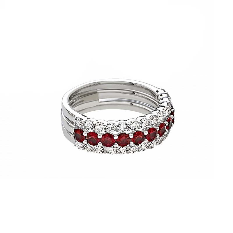 Anello in oro bianco con diamanti e rubini a taglio brillante.