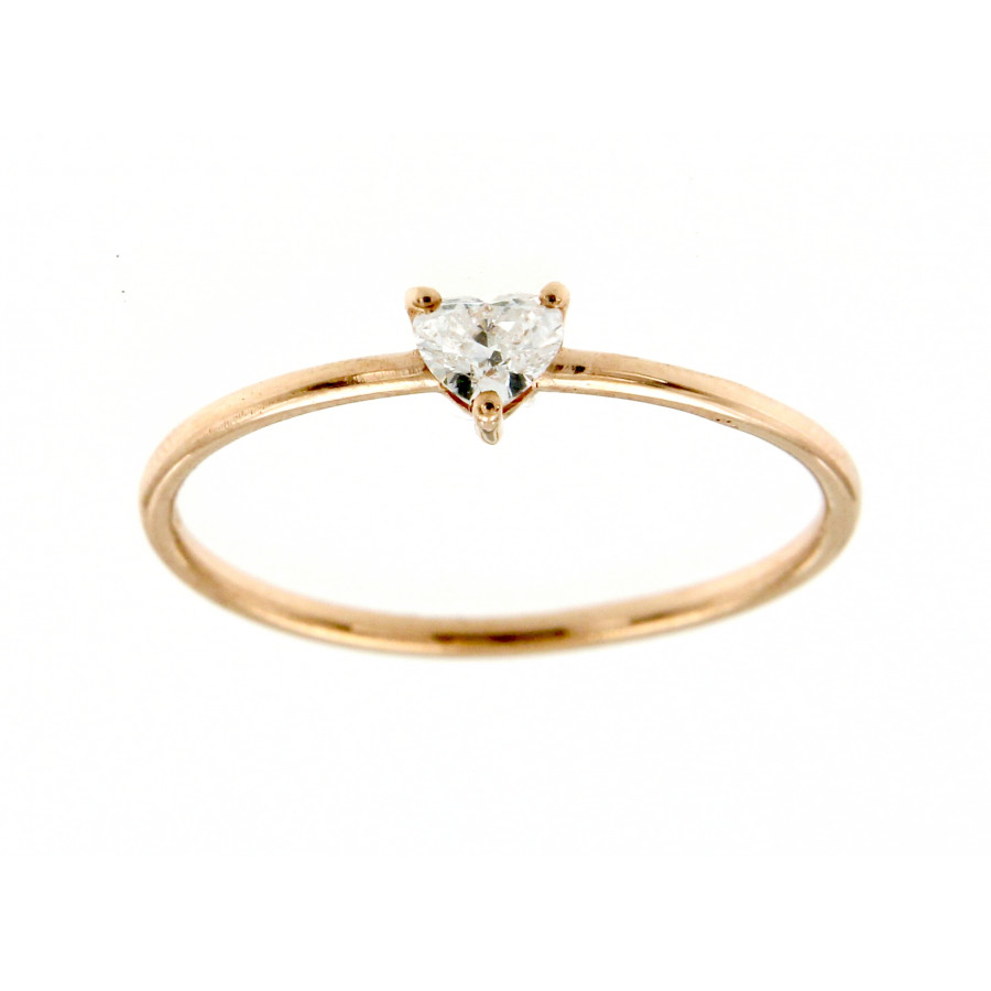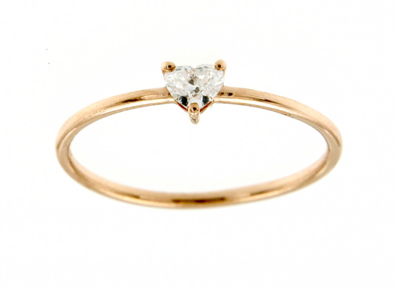 Anello in oro rosa 18k con diamante taglio cuore da 0.20ct