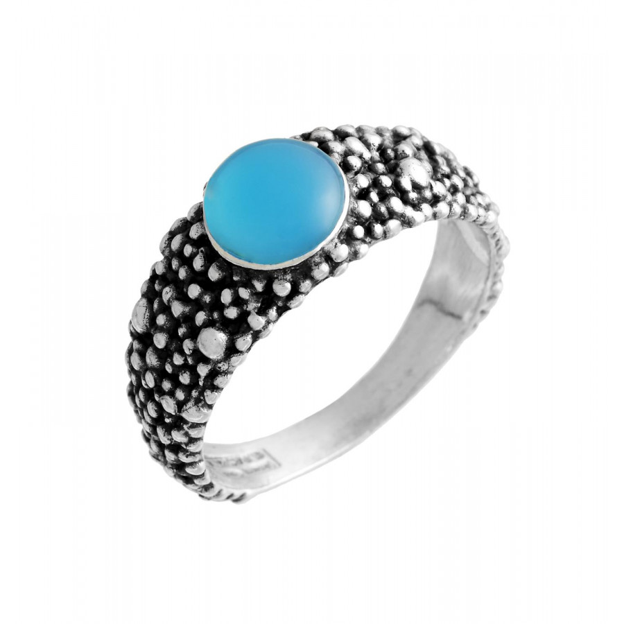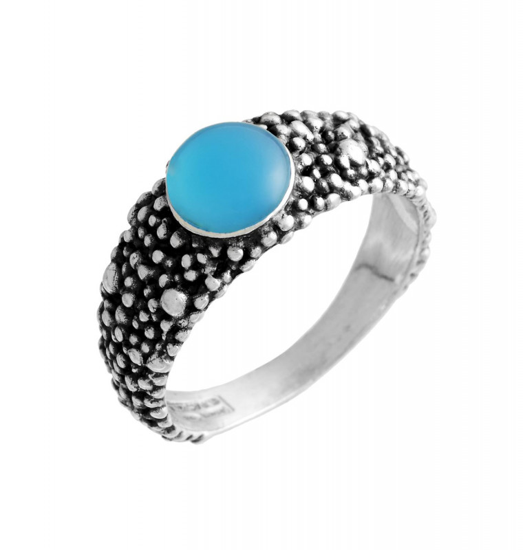 Anello Giovanni Raspini in argento con agata azzurra della collezione Perlage.