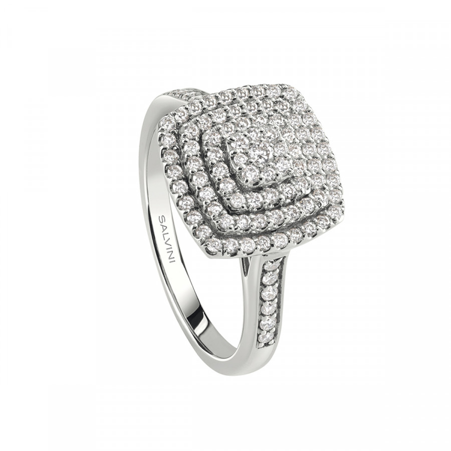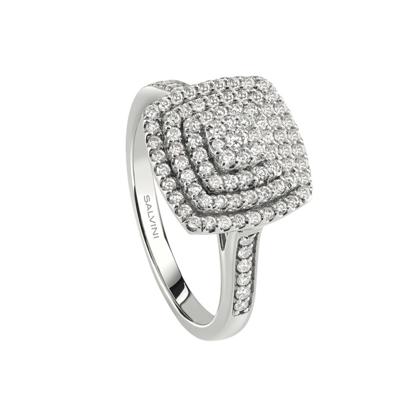 Anello in oro bianco 18kt con diamanti, della collezione Bagliori di Salvini.