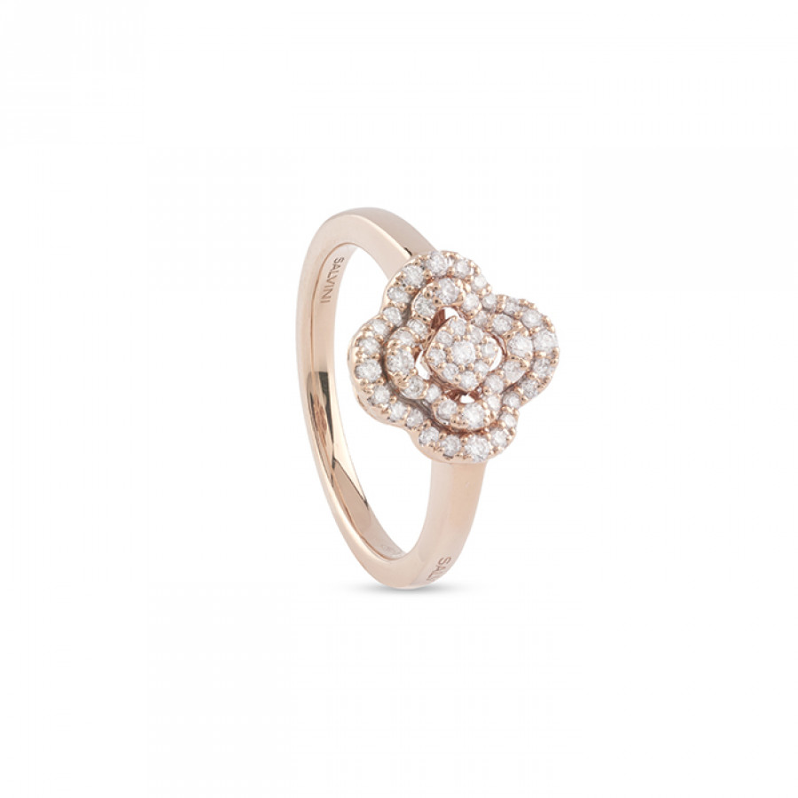 Anello Salvini in oro rosa 18kt con diamanti con fiore medium, della collezione Bagliori