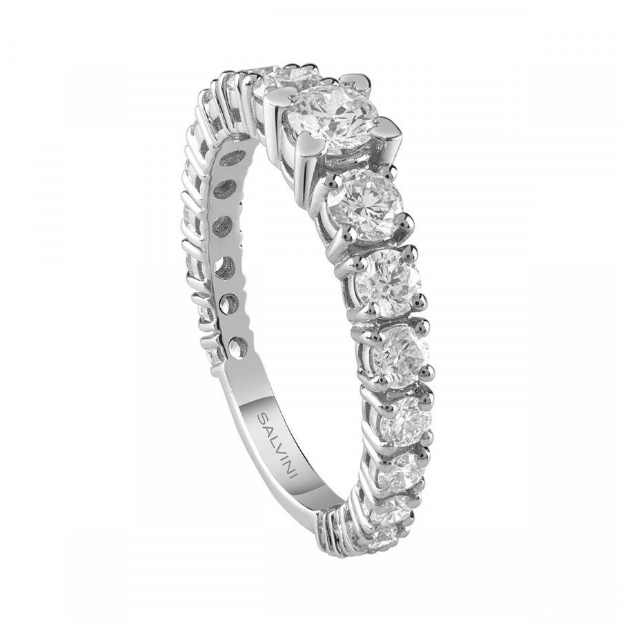 Anello in oro bianco e oro rosa con diamanti, della collezione Battito di Salvini.