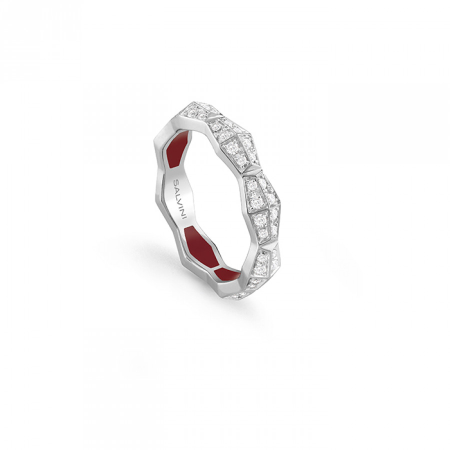 Anello Salvini gioielli in oro bianco con diamanti e hyceramic rosso della collezione Eva.