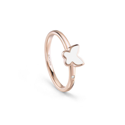 Anello Salvini in oro rosa e hybrid ceramica bianca con farfalla della collezione I Segni