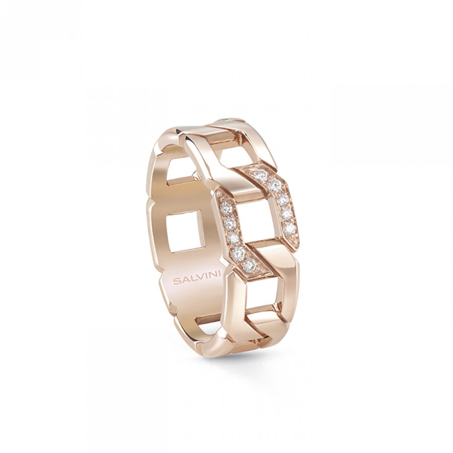 Anello in oro rosa con diamanti, della collezione Link di Salvini.