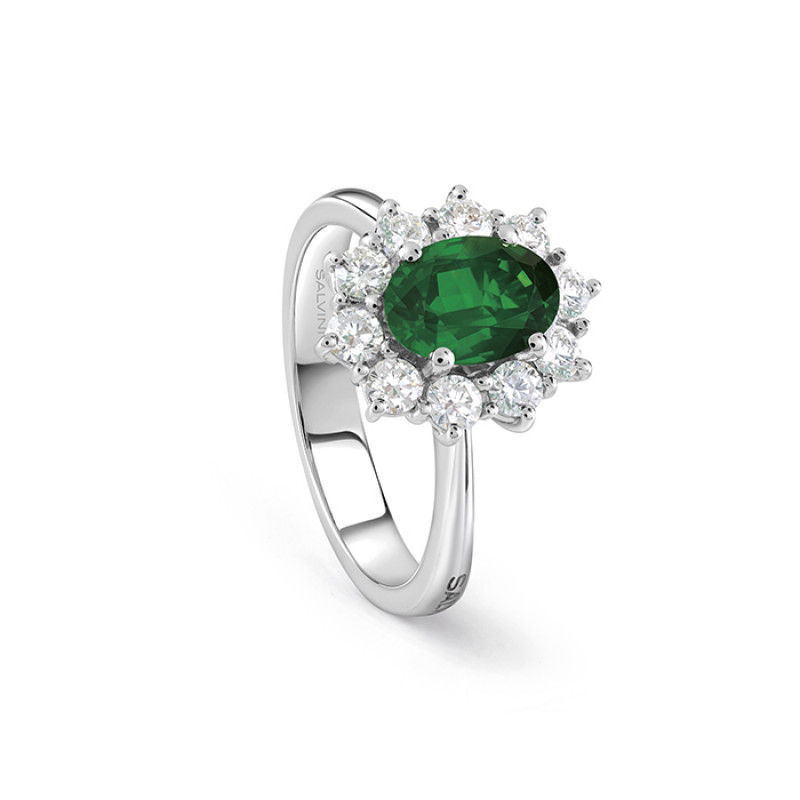 Anello Salvini in oro bianco, smeraldo e diamanti della collezione Love for color